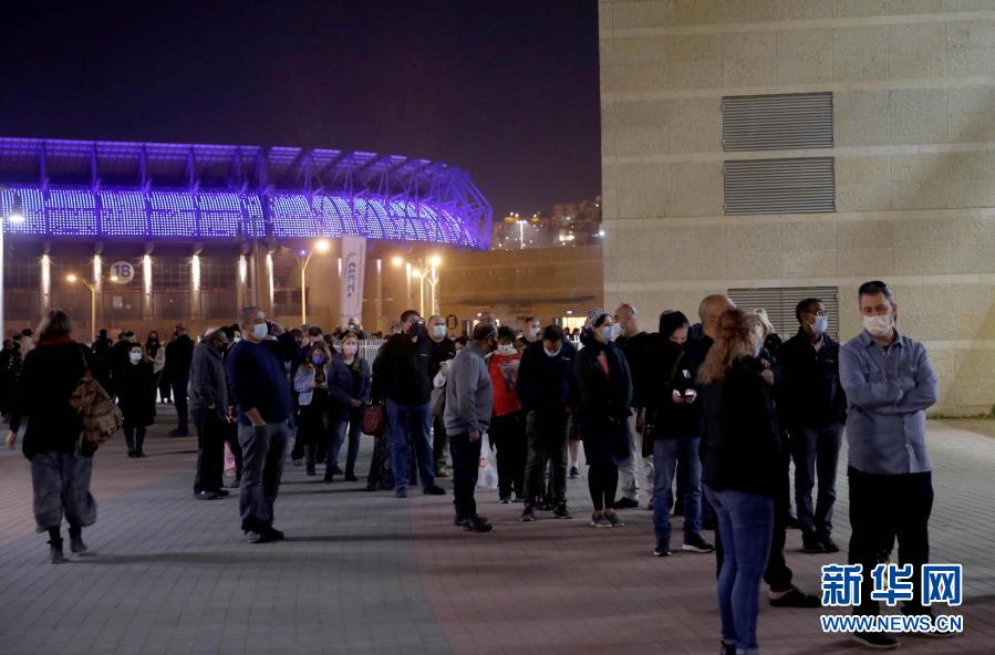1月11日,在位于耶路撒冷的一处卫生服务站,人们排队等待接种新冠疫苗。新华社发(吉尔·科恩·马根 摄)