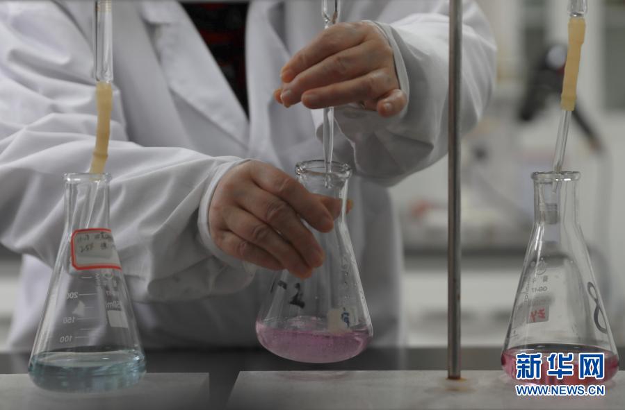 1月8日,钟本和在四川大学化学工程学院制备分析室里进行化学分析实验。新华社记者 胥冰洁 摄