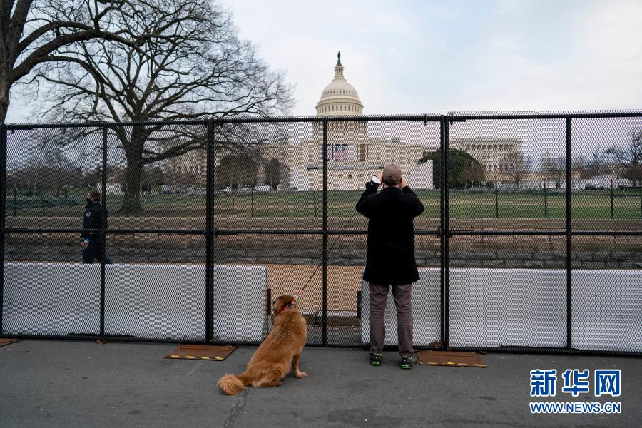 1月11日,在美国首都华盛顿,一名男子在国会大厦附近的隔离围栏外拍照。新华社记者 刘杰 摄