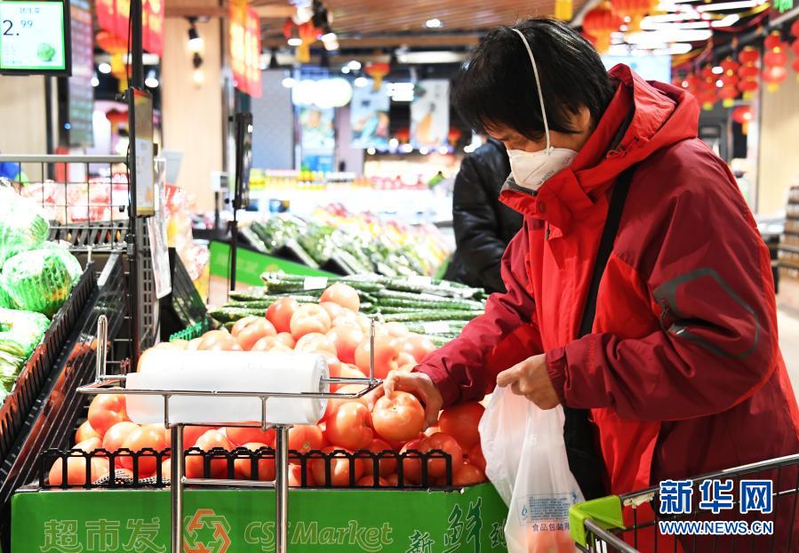 1月12日,在超市发双榆树店,市民选购蔬菜。新华社记者 任超 摄