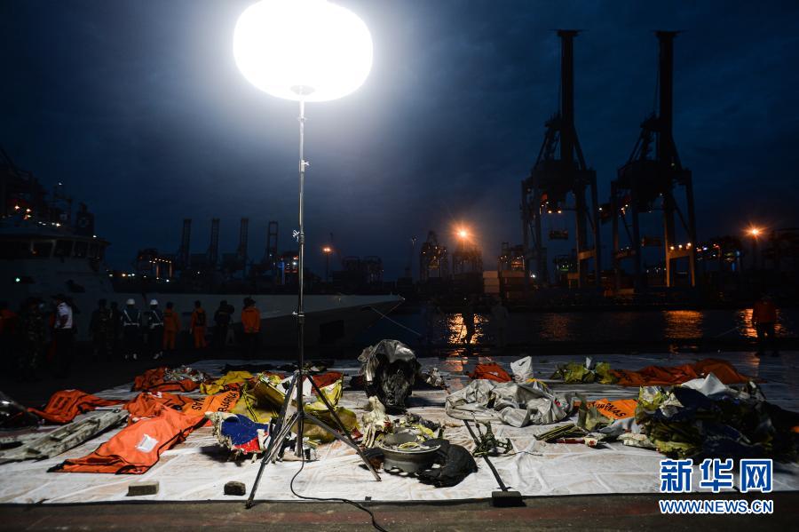 这是1月13日在印度尼西亚雅加达丹戎不碌港拍摄的失事客机残骸和遇难者遗骸。新华社发(阿贡摄)
