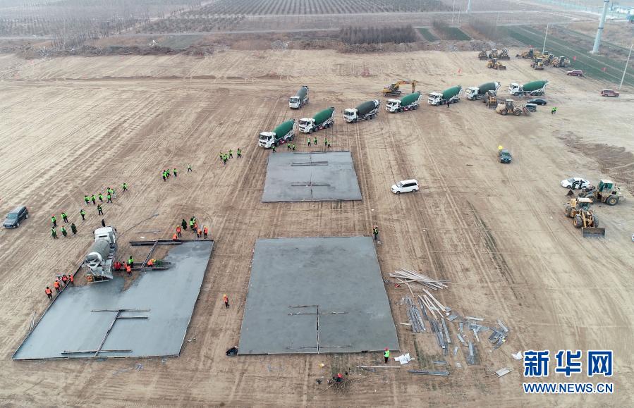 这是1月14日拍摄的石家庄市集中隔离点建设施工现场(无人机照片)。