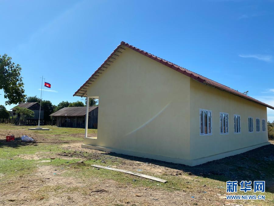 这是2020年12月28日在柬埔寨南部的茶胶省特列村拍摄的小学新校舍。
