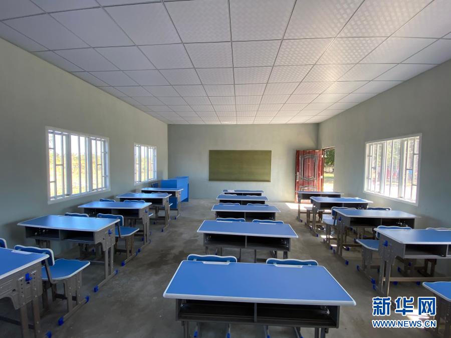这是2020年12月28日在柬埔寨南部的茶胶省特列村拍摄的小学新校舍。