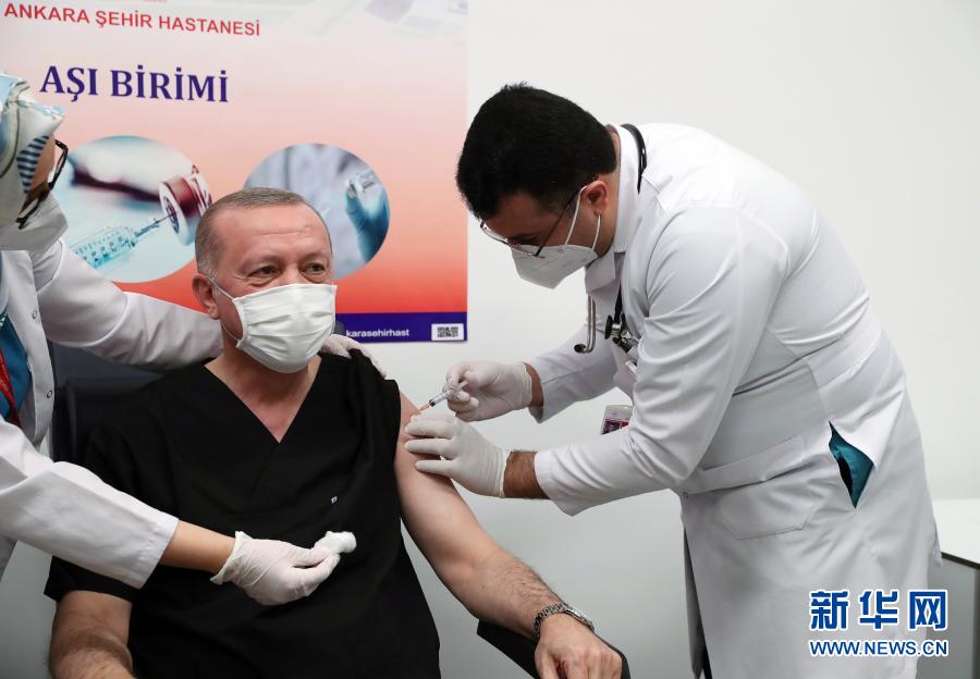 当日,埃尔多安在安卡拉接种中国科兴公司研发的新冠疫苗。埃尔多安随后在社交媒体上宣布了这一消息。