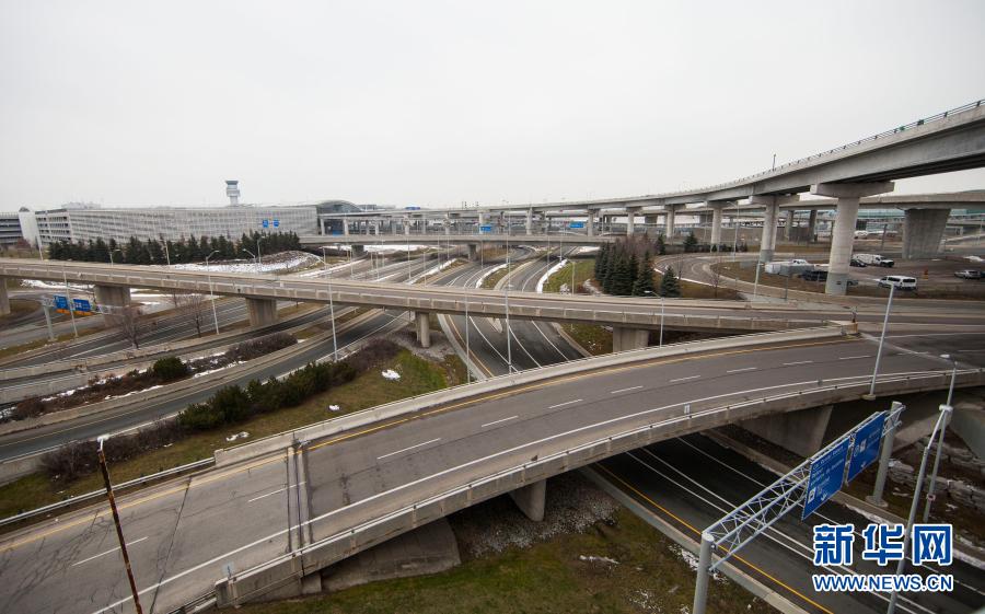 这是1月14日在加拿大安大略省多伦多皮尔逊国际机场附近拍摄的高速公路。