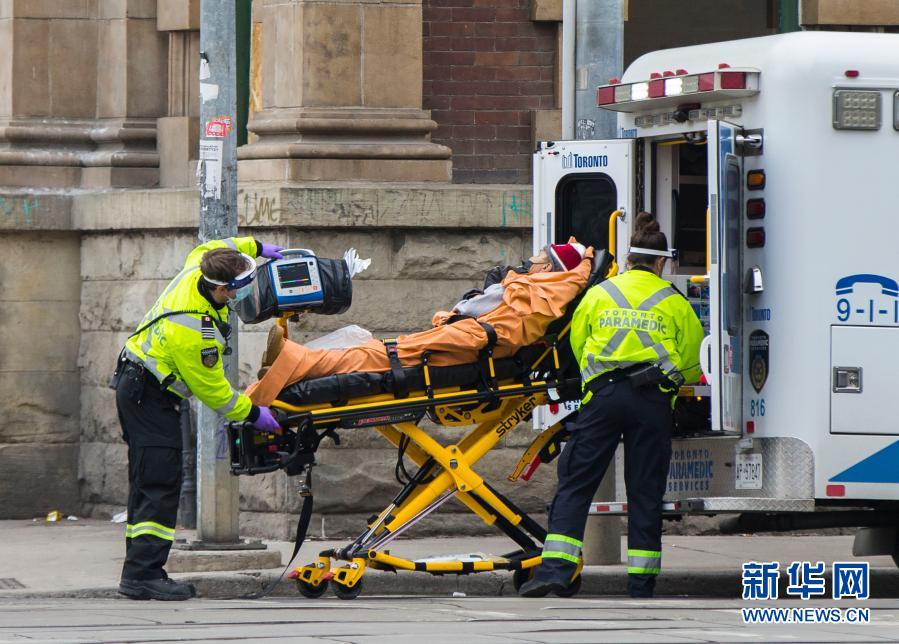 1月14日,在加拿大安大略省多伦多,患者被急救人员送上救护车。