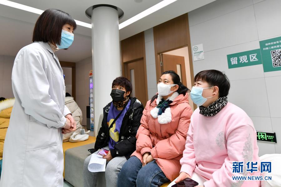 1月15日,在太原市和平社区卫生服务中心,医护人员在留观区了解接种人员接种后的身体情况。