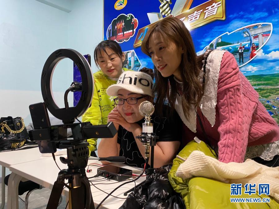 在大兴安岭林业集团公司阿木尔林业局网红创业中心,几名幼儿园教师利用业余时间进行直播(2020年12月3日摄)。
