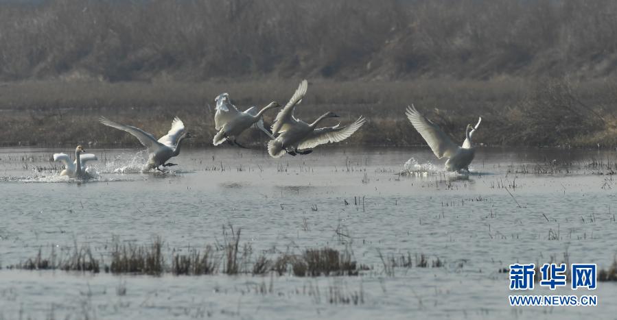 这是1月15日在湖南省岳阳市屈原管理区古湖湿地拍摄的天鹅。