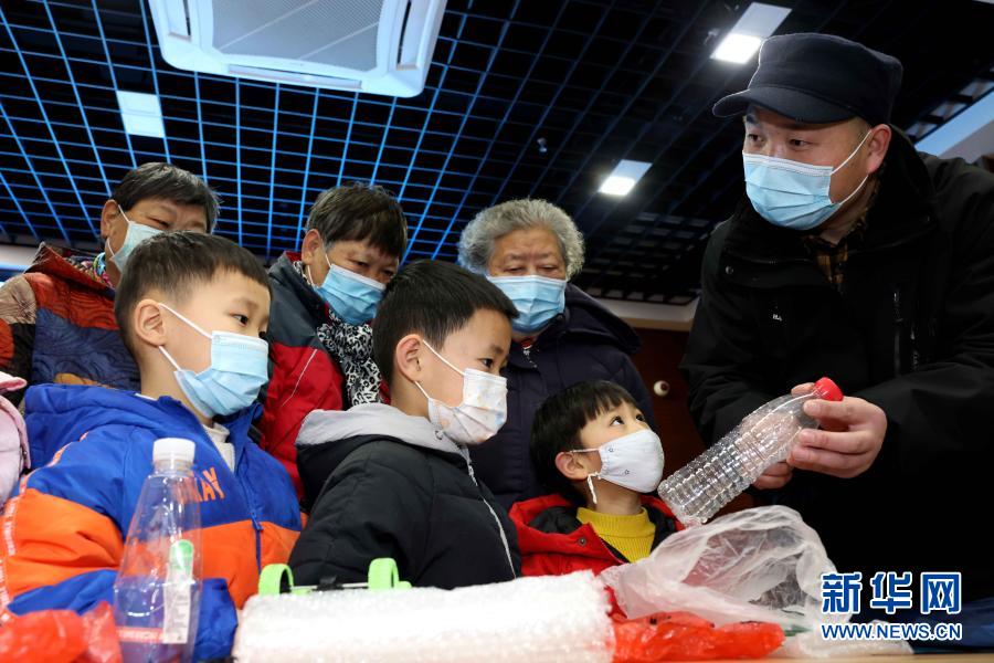 1月15日,在合肥市瑶海区胜利路街道红旗社区,环保宣传员在为居民讲解减少塑料污染和垃圾分类等环保知识。新华社发(解琛 摄)