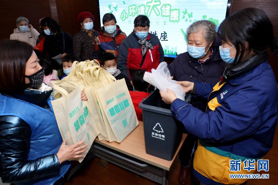 1月15日,在合肥市瑶海区胜利路街道红旗社区,环保宣传员在为居民进行“限塑”兑换。新华社发(解琛 摄)