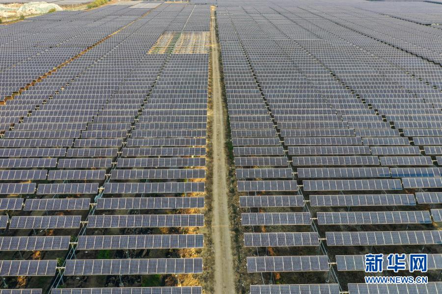这是1月15日拍摄的广西桂平市蒙圩镇玉柴农光互补光伏发电项目(无人机照片)。新华社记者 曹祎铭 摄