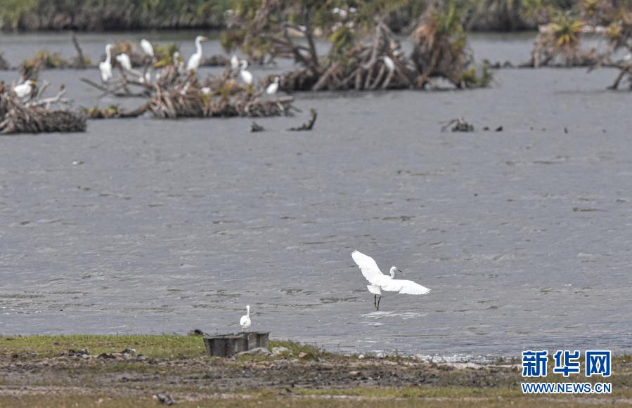 随着天气转冷,许多鹭鸟飞到海南万宁的湿地越冬栖息。
