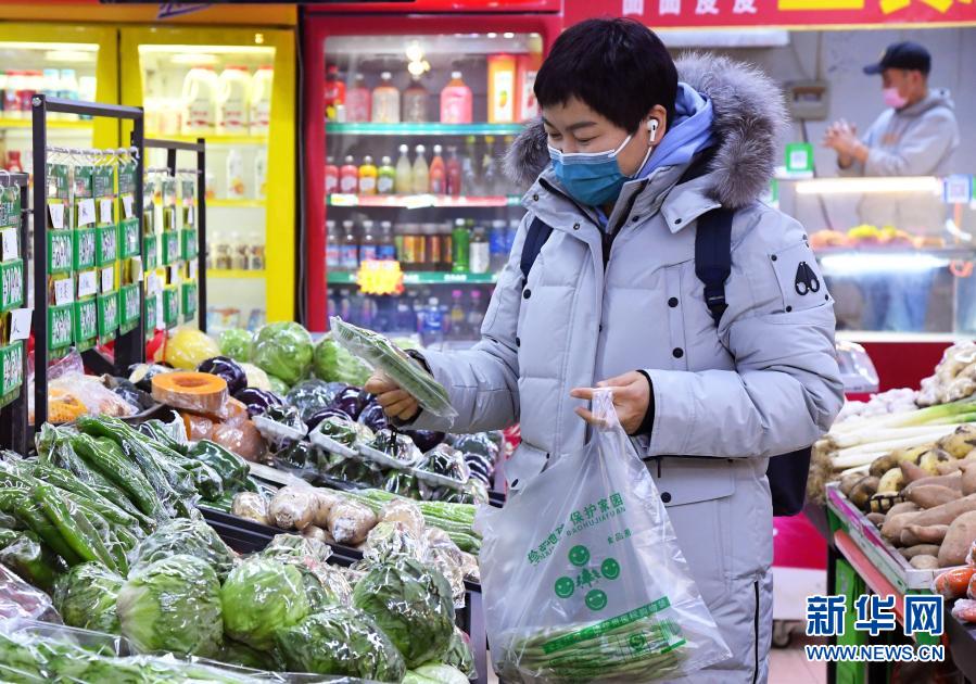 1月16日,在北京市海淀区学院路街道学清苑社区便民超市,社区居民在挑选蔬菜。
