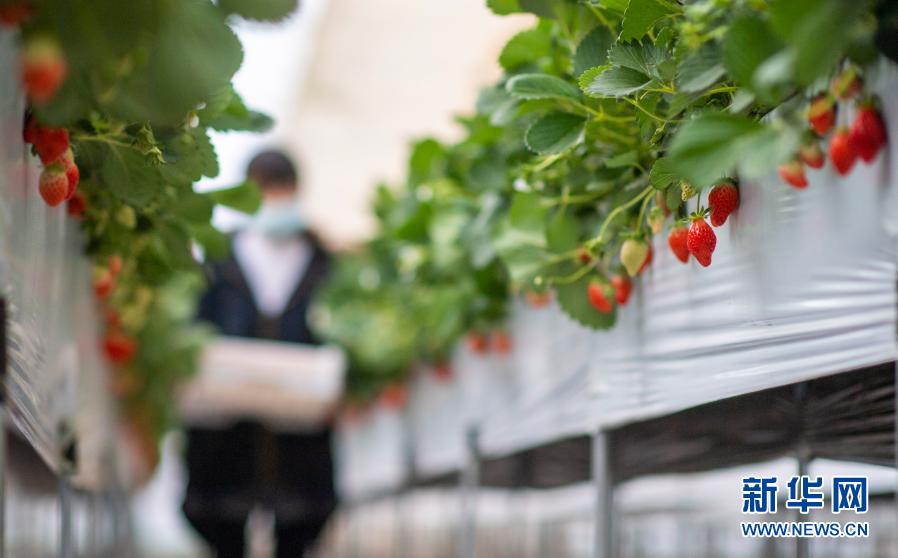 云南省会泽县待补镇村民在采摘草莓(1月15日摄)。