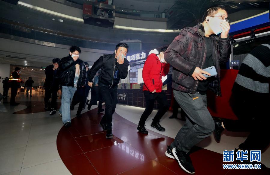1月16日,部分员工从发生“火情”的商场内快速疏散撤离。