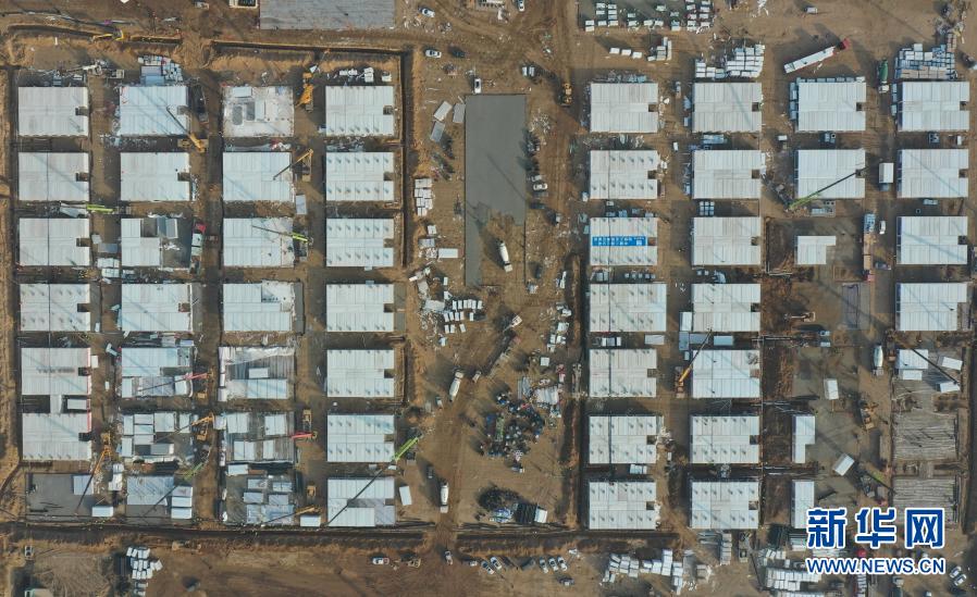1月16日拍摄的石家庄黄庄公寓隔离场所项目工地施工现场(无人机照片)。