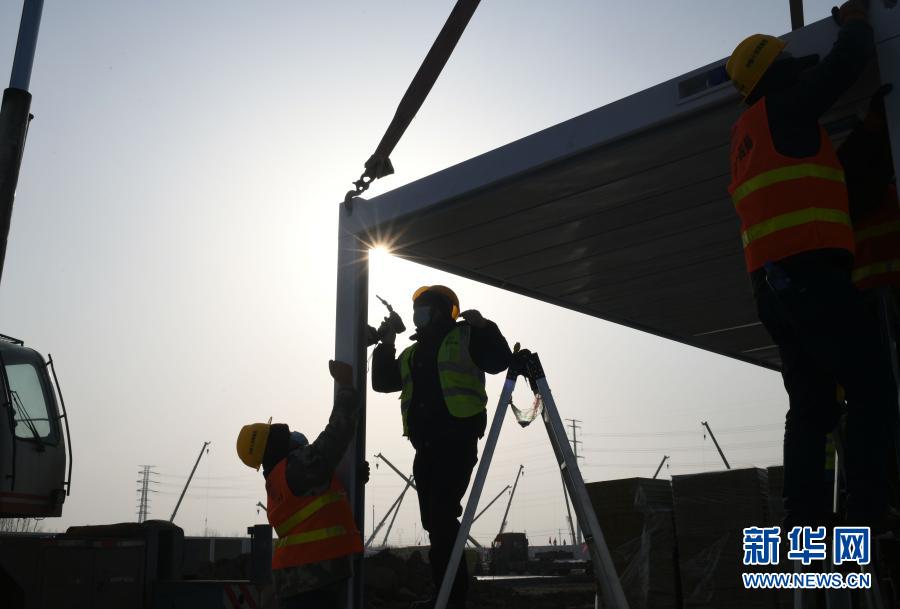 1月16日,工人在石家庄黄庄公寓隔离场所项目工地施工。