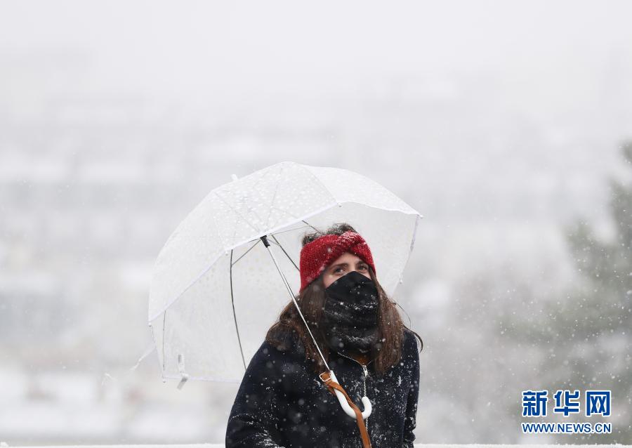 当日,法国巴黎迎来今冬以来的首场降雪。