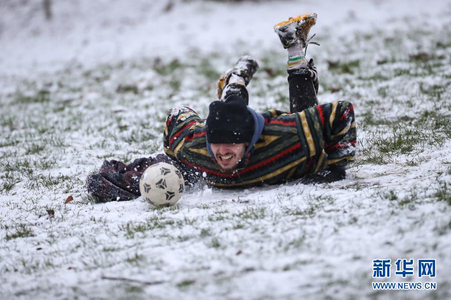 当日,比利时首都布鲁塞尔迎来降雪,吸引众多市民来到公园赏雪、玩雪。