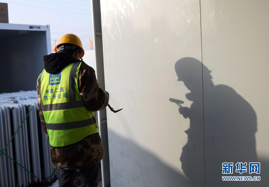 1月16日,代斌在石家庄黄庄公寓隔离场所项目工地施工。