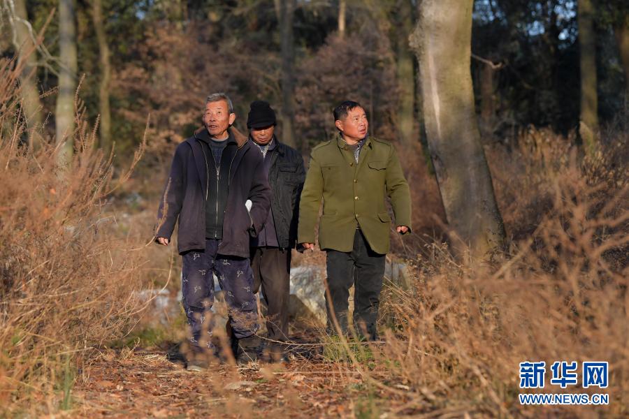 在江西省都昌县苏山乡达子咀村,村里的护鸟巡护队队员在巡查(1月13日摄)。