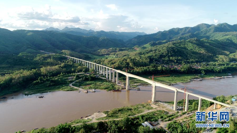 这是2020年7月15日拍摄的中老铁路班纳汉湄公河特大桥(无人机照片)。
