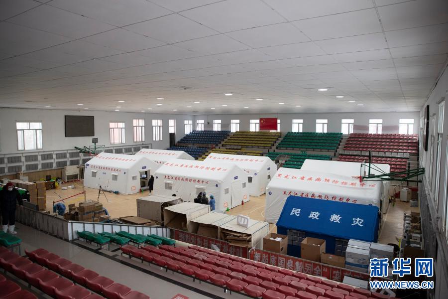 1月17日拍摄的设在望奎县体育馆内的移动方舱检测实验室。