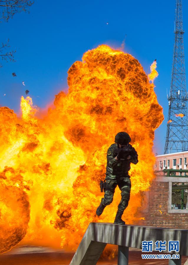 武警猎鹰突击队特战队员进行真实战场环境下的越障训练(2019年2月20日摄)。新华社发(杨志毅 摄)