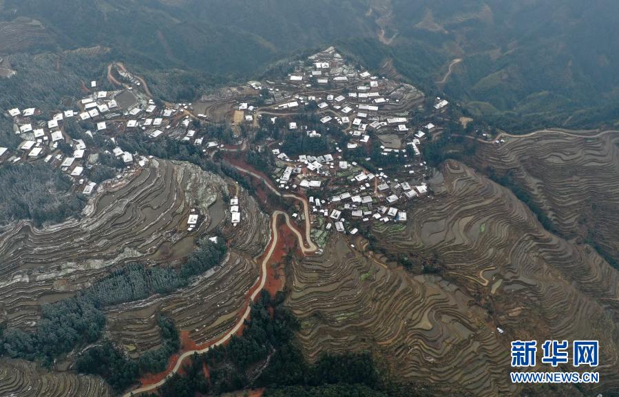 1月17日拍摄的贵州省从江县翠里瑶族壮族乡南岑村的雪景(无人机照片)。