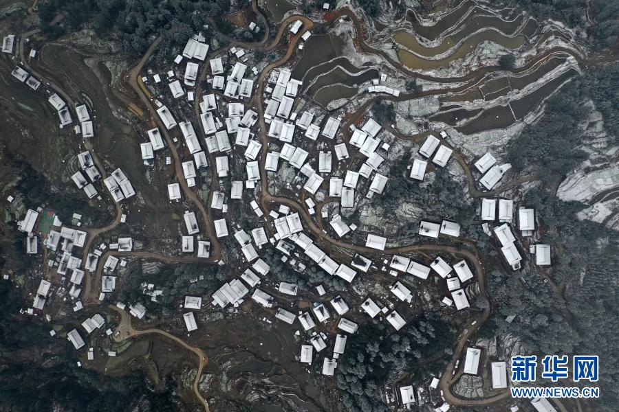 1月17日拍摄的贵州省从江县翠里瑶族壮族乡南岑村的雪景(无人机照片)。