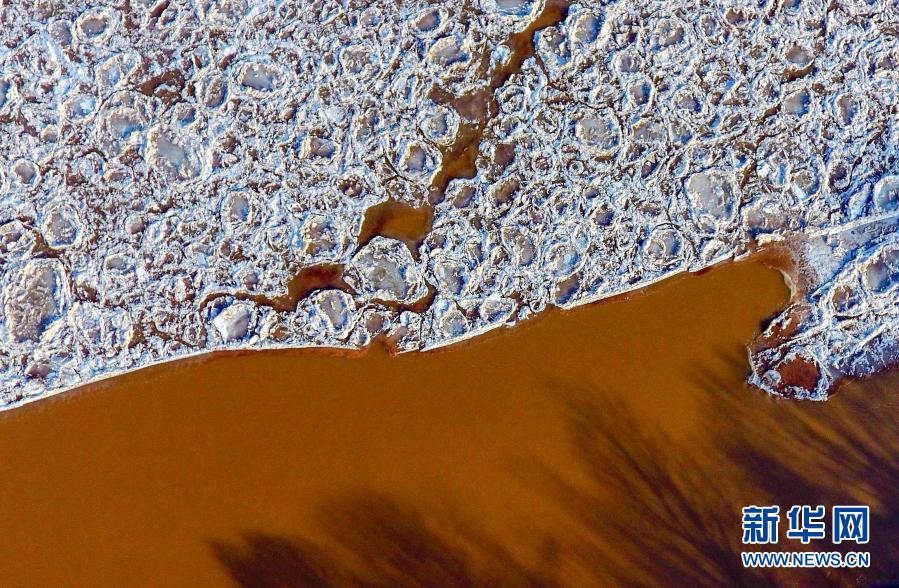 1月11日拍摄的已经结冰封河的黄河济南泺口段(无人机照片)。