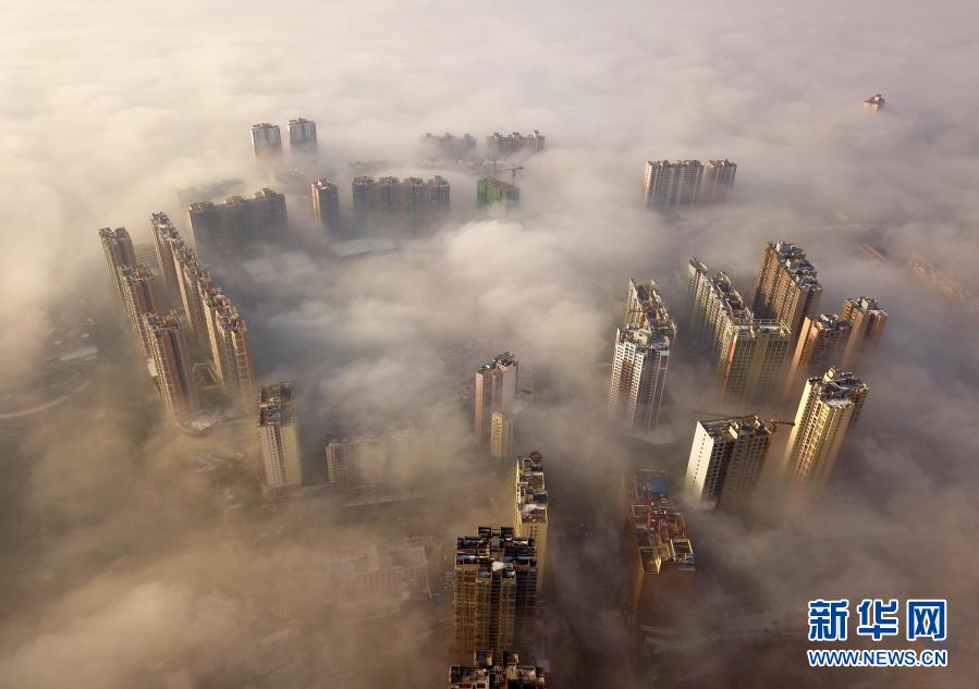 1月14日在贵州省威宁县城拍摄的平流雾景观(无人机照片)。