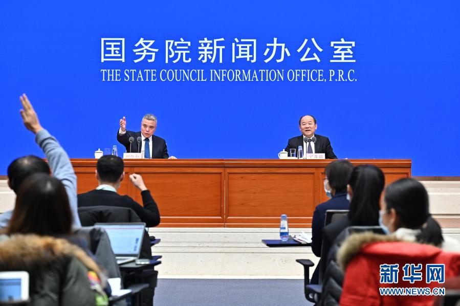 1月18日,国务院新闻办公室在北京举行新闻发布会,请国家统计局局长宁吉喆介绍2020年国民经济运行情况,并答记者问。新华社记者 李鑫 摄