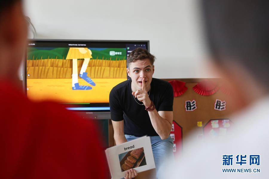 1月14日,亚历克斯在任职的幼儿园给小朋友上课。