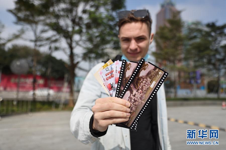 1月16日,亚历克斯展示12月“纠错达人”的部分奖品,有景区门票、咖啡套装等。新华社记者 张丽芸 摄