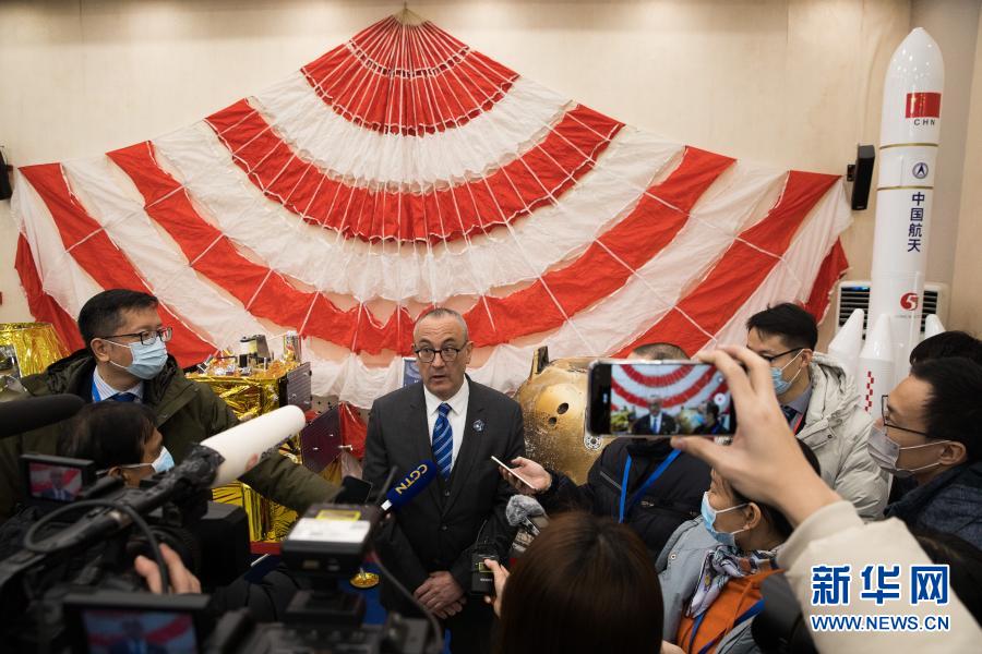 1月18日,在中科院国家天文台,法国国家空间研究中心代表包若柏(中)在接受媒体采访。新华社记者 金立旺 摄