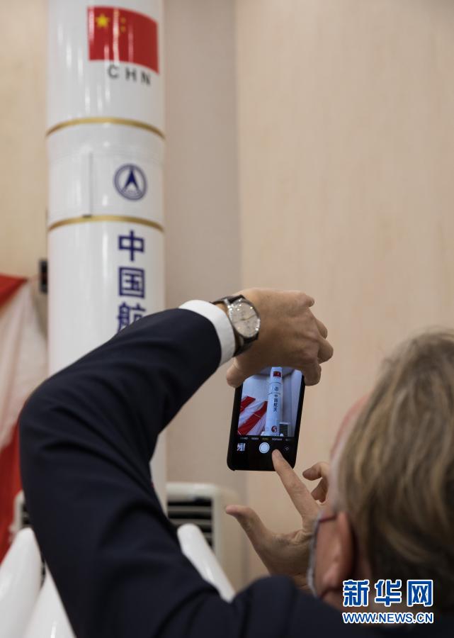 1月18日,在中科院国家天文台,一名与会者在拍摄嫦娥五号任务着陆上升组合体等航天器模型和返回器实物。新华社记者 金立旺 摄