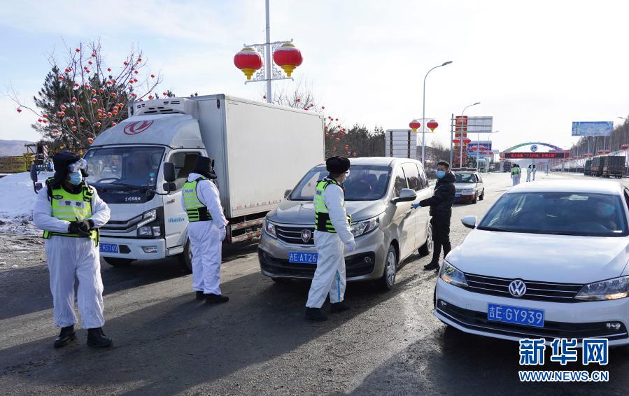 1月18日,防疫人员检查出城车辆、人员的证件及核酸检测报告。新华社记者 许畅 摄