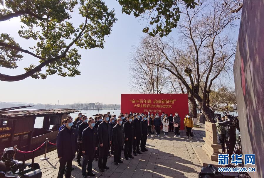 1月18日,浙江新闻宣传战线代表在嘉兴南湖参加“奋斗百年路 启航新征程”大型主题采访活动启动仪式。