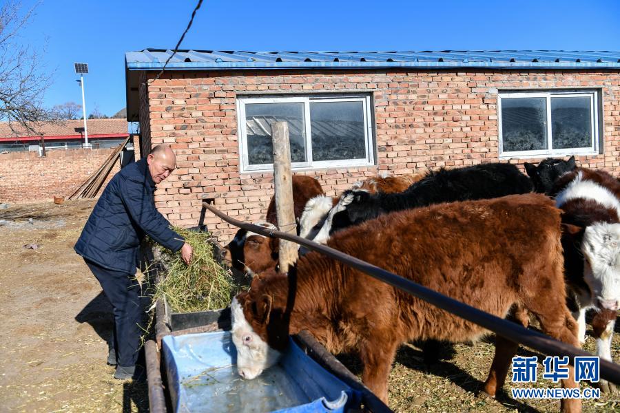 村民李云生在喂牛(2020年12月29日摄)。新华社记者 曹阳 摄