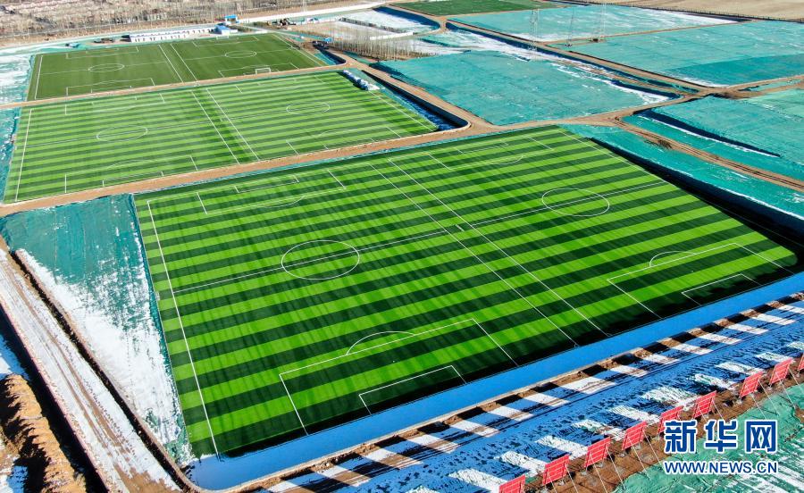 这是2020年12月30日拍摄的位于右玉县的国家级青少年足球夏训基地施工现场(无人机照片)。新华社记者 曹阳 摄