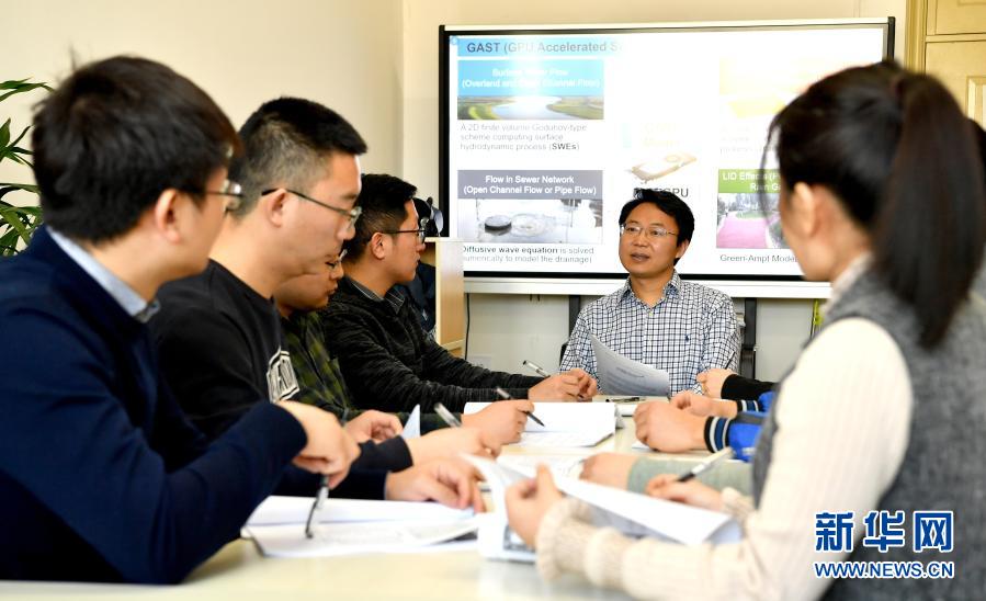 1月12日,侯精明(右二)在西安理工大学与研究生进行讨论。新华社记者 刘潇 摄