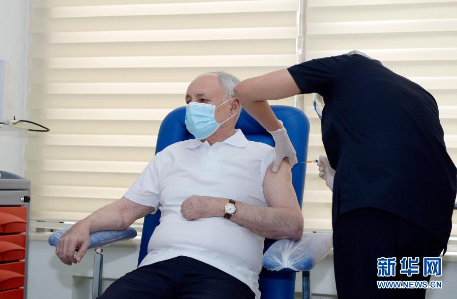 阿塞拜疆18日正式启动第一阶段新冠疫苗接种工作,阿卫生部长奥格塔伊·希莱里耶夫在阿首都巴库率先接种了中国科兴公司生产的新冠疫苗。