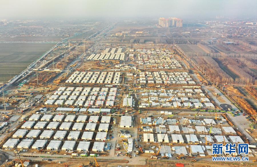 1月18日拍摄的石家庄黄庄公寓隔离场所项目工地(无人机照片)。新华社记者 杨世尧 摄