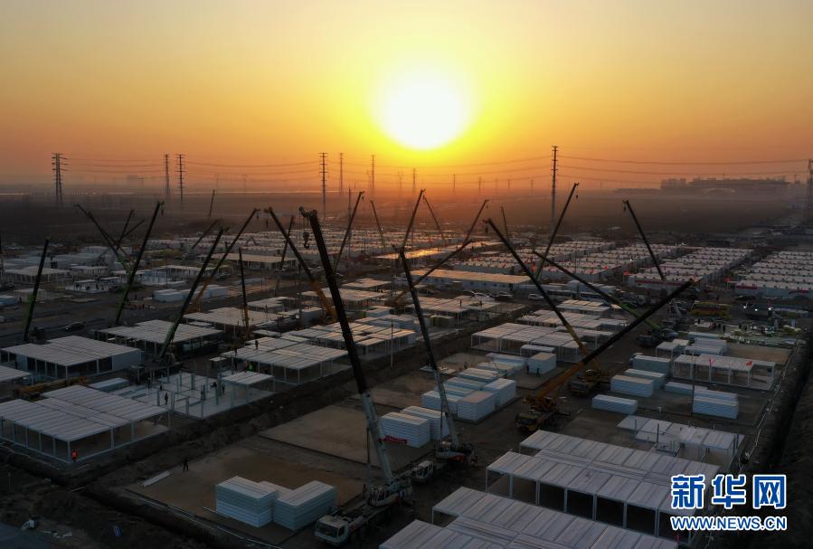 1月18日拍摄的石家庄黄庄公寓隔离场所项目施工现场(无人机照片)。新华社记者 杨世尧 摄