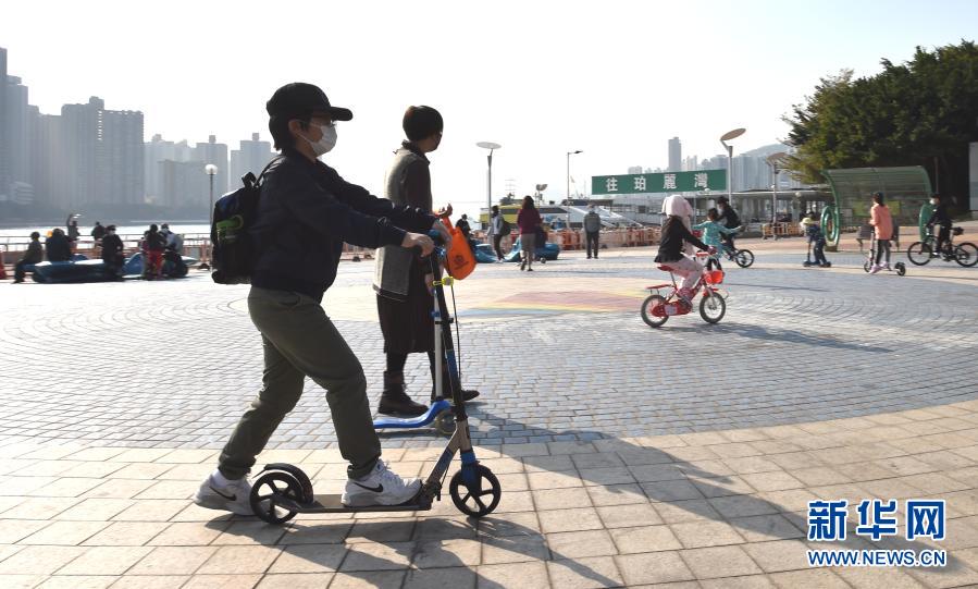 1月18日,人们在香港一广场游玩。