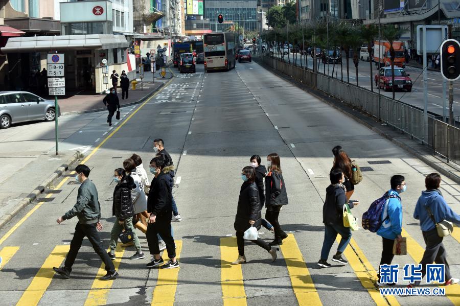 1月18日,戴口罩的市民在香港街头行走。新华社记者 卢炳辉 摄