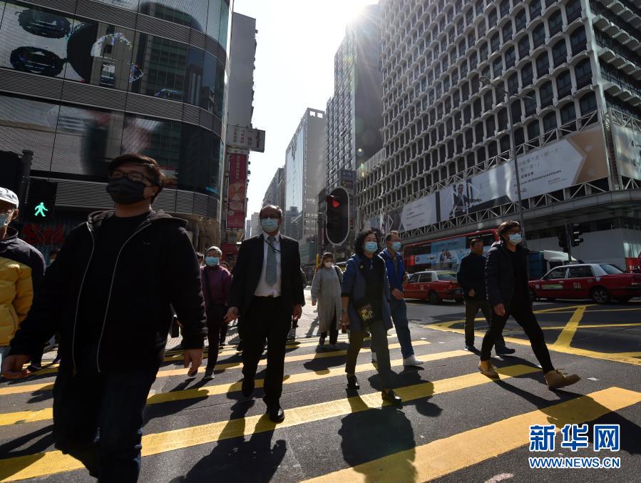 1月18日,戴口罩的市民在香港街头行走。新华社记者 卢炳辉 摄